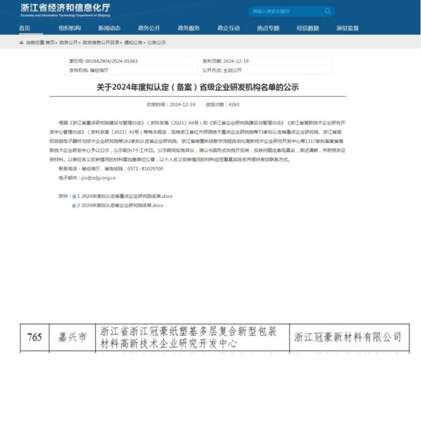 近日,浙江省經(jīng)濟(jì)和信息化廳公示了 2024 年度省級(jí)企業(yè)研發(fā)機(jī)構(gòu)認(rèn)定結(jié)果,浙江冠豪順利通過(guò)浙江省高新技術(shù)企業(yè)研究開(kāi)發(fā)中心認(rèn)定,被正式授予“浙江省浙江冠豪紙塑基多層復(fù)合新型包裝材料高新技術(shù)企業(yè)研究開(kāi)發(fā)中心”稱(chēng)號(hào),這一重要成果標(biāo)志著浙江冠豪在科技創(chuàng)新和研發(fā)能力方面邁出了堅(jiān)實(shí)的一步。